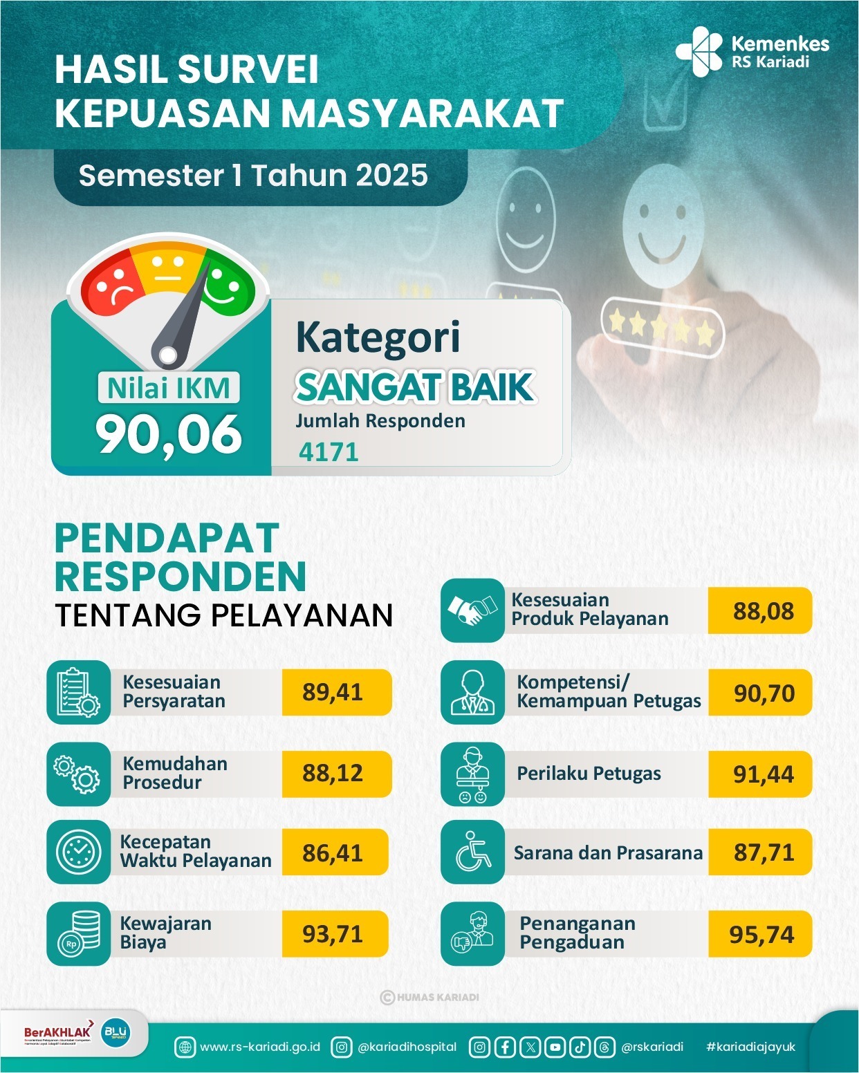 Survei Kepuasan masyarakat RS Kariadi dilaksanakan sesuai dengan Permen PAN & RB No. 14 Tahun 2017 Tentang Pedoman Penyusunan Survei Kepuasan Masyarakat Unit Penyelenggara Pelayanan Publik.